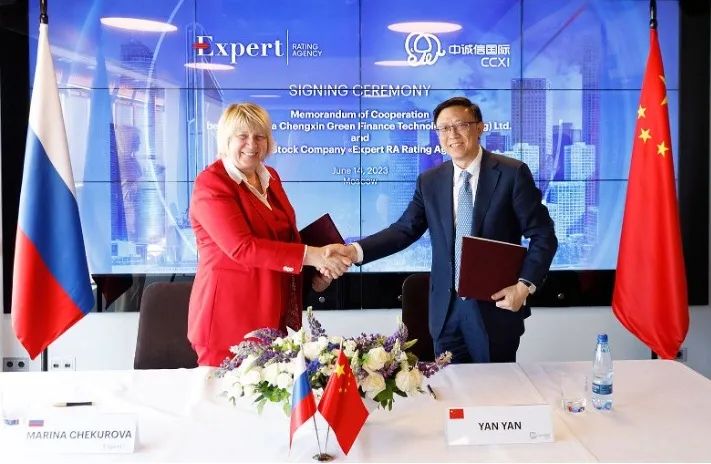 2023年6月14日,中誠信國際(CCXI)與俄羅斯領(lǐng)先評級機(jī)構(gòu)Expert RA在莫斯科簽署合作備忘錄,建立合作伙伴關(guān)系,共同加強在綠色金融評估、ESG評級和可持續(xù)金融領(lǐng)域的合作,為“一帶一路”以及中俄和金磚國家綠色項目提供服務(wù)。