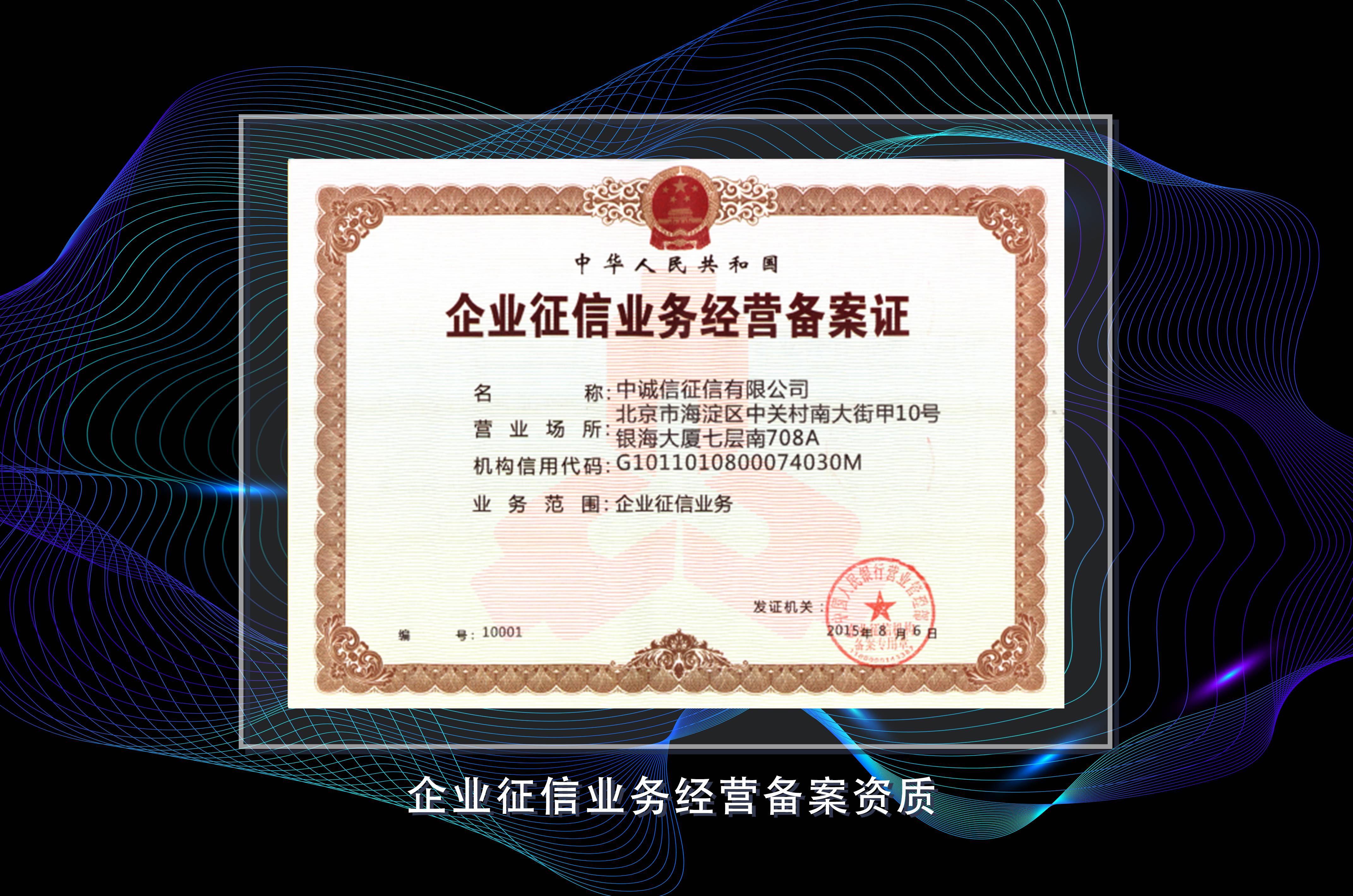 6月,中誠信征信獲得中國人民銀行頒發(fā)的第一張“企業(yè)征信業(yè)務(wù)經(jīng)營備案證”。